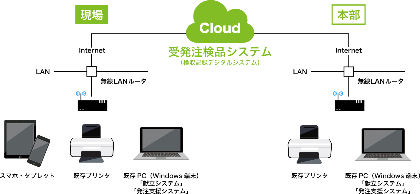 栄養管理ソフトと受発注検品システムを連動させ、人手を介さずにシームレスな連携がとれるようにシステムを用意(献立マンやQカロリーは既に連携済)しております。